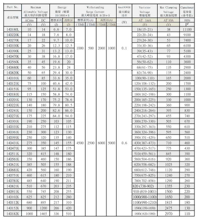压敏電阻(DIP)插件:MY14D系列