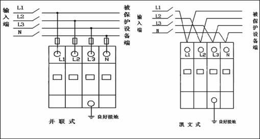 时,要求防雷器的接地端与接地网之间的连接距离尽可能越近越好。如果防雷器接地线拉得过长,将导致防雷器上的限制电压(被保护线与地之间的残压)过高,可能使防雷器难于起到应有的保护作用,因此防雷器的正确安装以及接地系统的良好与否,将直接关系到