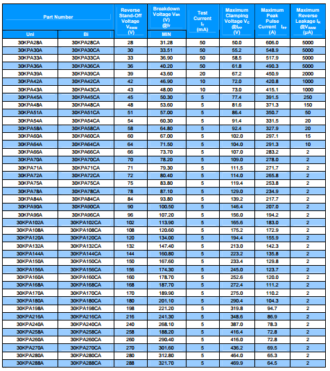 瞬态电压抑制管(TVS) ---- 同轴引线TVS管