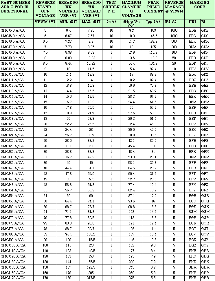 型号:SMCJ5.0A/CA-170A/CA
