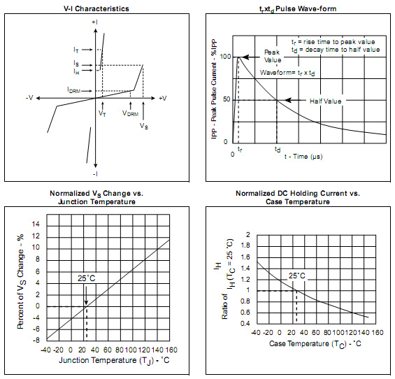 ●Listed SIDACtors are bi-directional. All electrical parameters & surge ratings apply to forward and reverse polarities.