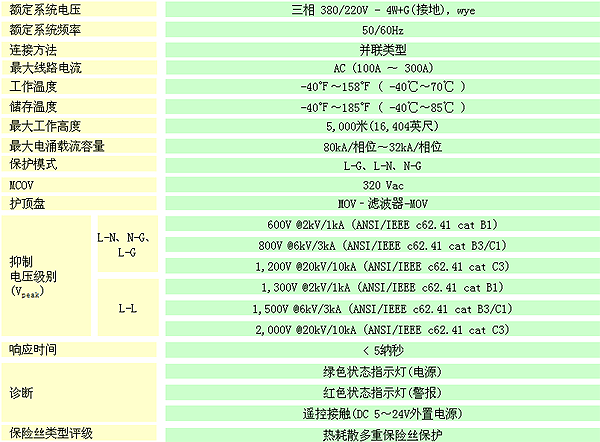 SurgeBox TM H-系列的中性线必须始终连接。这些设备不适含中性线不接地的系统。SurgeBox TM H-系列应使用TN-S、TT、IT系统的三相220〜240VAC(相线到中性线电压),4线+接地。