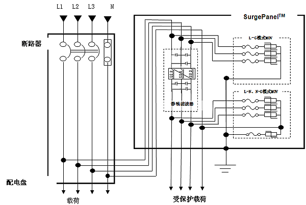 用于AC电路的SurgeBox TM可安装在主要进线口、配电盘和副盘上n