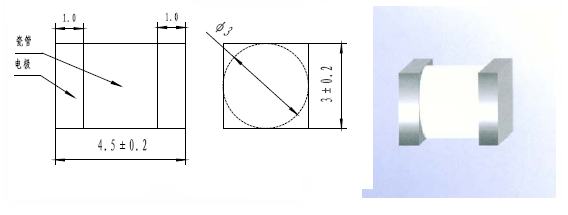 贴片2R系列陶瓷气体 放电管(3.0x3.0x4.5/mm)