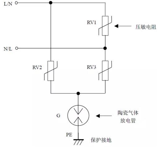 缺点:压敏电阻RV1 短路失效后易引起火灾。最好在每个压敏电阻上串联一个工频保险丝以防压敏电阻短路起火。如果L、N 线不可能接反,则可省去压敏电阻RV2、RV3,将放电管G 的上端直接接到N 线上,构成“1+1”电路。